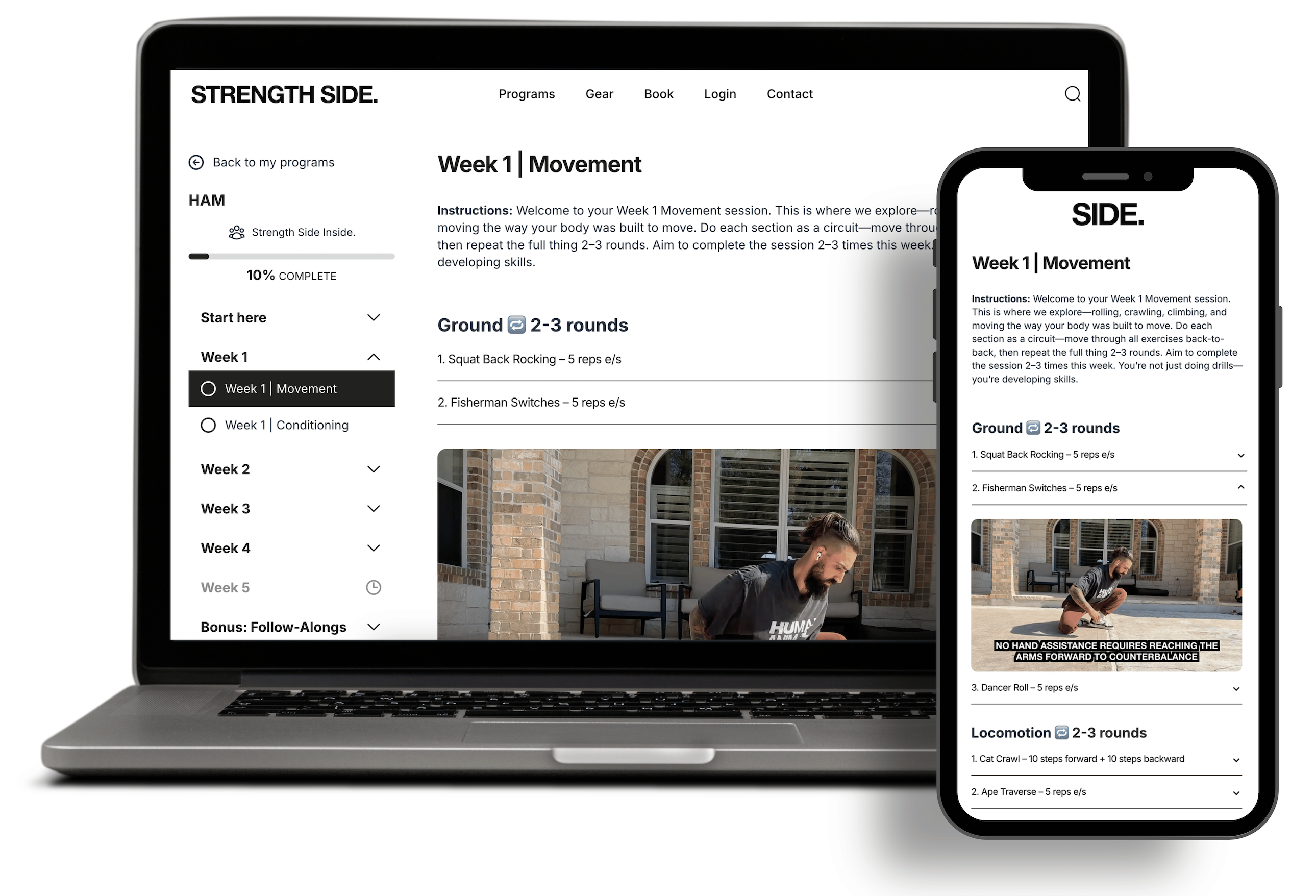 But the schedule is also completely customizable to your own unique needs. You can combine the Movement day with your lifting or running training. However you choose to structure your week, I can help with this just shoot an email to yo@strengthside.com.
